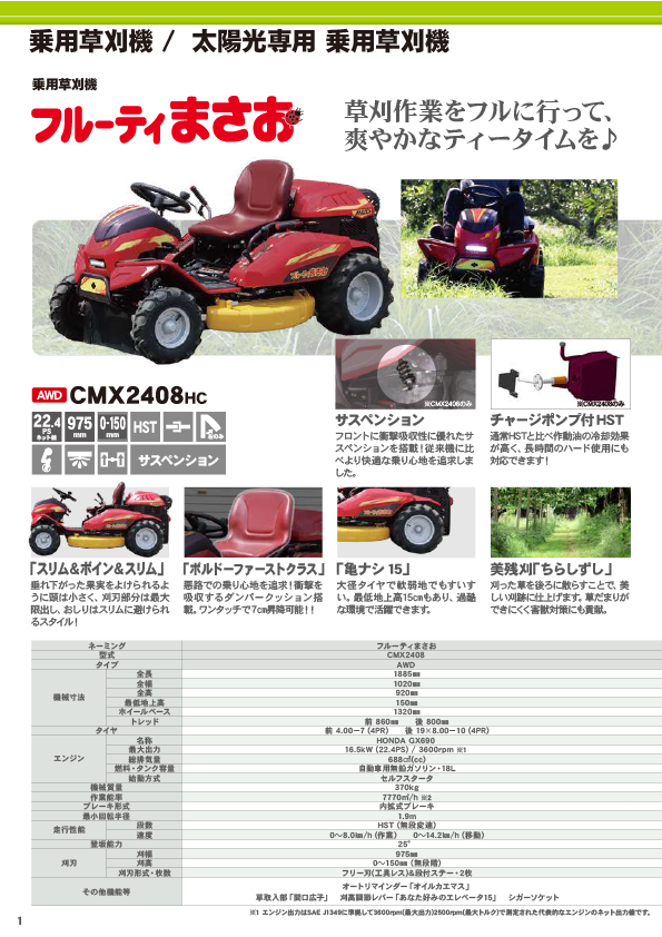 > 新商品導入!! フルーティまさお(乗用草刈機) CMX2408HC