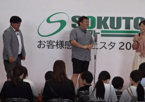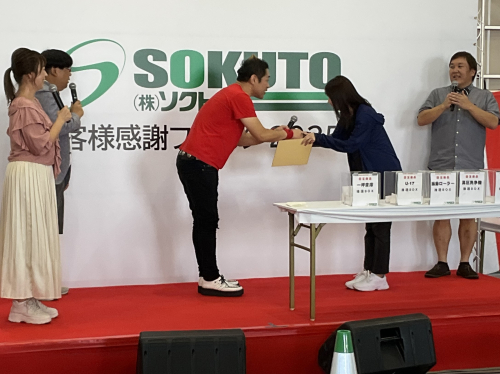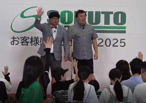 イベント 2025.10.20 2025年10月10日(金)・11日(土)の2日間、毎年恒例となりました『お客様感謝フェスタ2025』を開催致しました。 2日間共、天候に恵まれ、1,378名のお客様に来場して頂きました。 今年は新しい試みとして『お笑いLIVE!!』を開催。ゲストは、はなわさんとメガモッツさん。 今までにない盛り上がりで、多くのお客様が笑顔になり、喜んで頂けました。 お忙しい中、ご来場して頂きまして、誠にありがとうございました!!